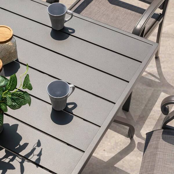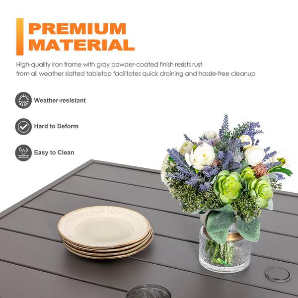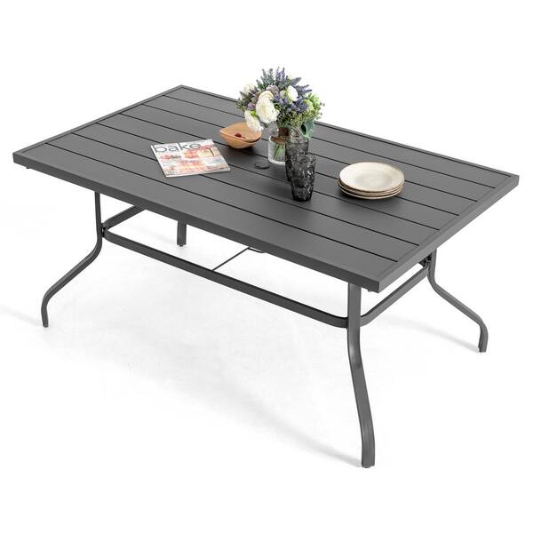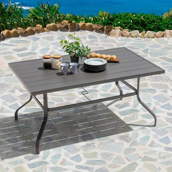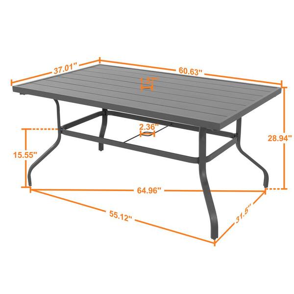 Specification: Gray Rectangle Powder-Coated Iron 61 in. x 37 in. Outdoor Dining Table with 1.57 in. Umbrella Hole