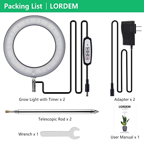 Specification: LORDEM Plant Grow Light, Full Spectrum Plant Light for Indoor Plants, Brightness Adjustable LED Growing Lamp with Auto On/Off Timer 4H/8H/12H, Height Adjustable, 2 Packs of Black